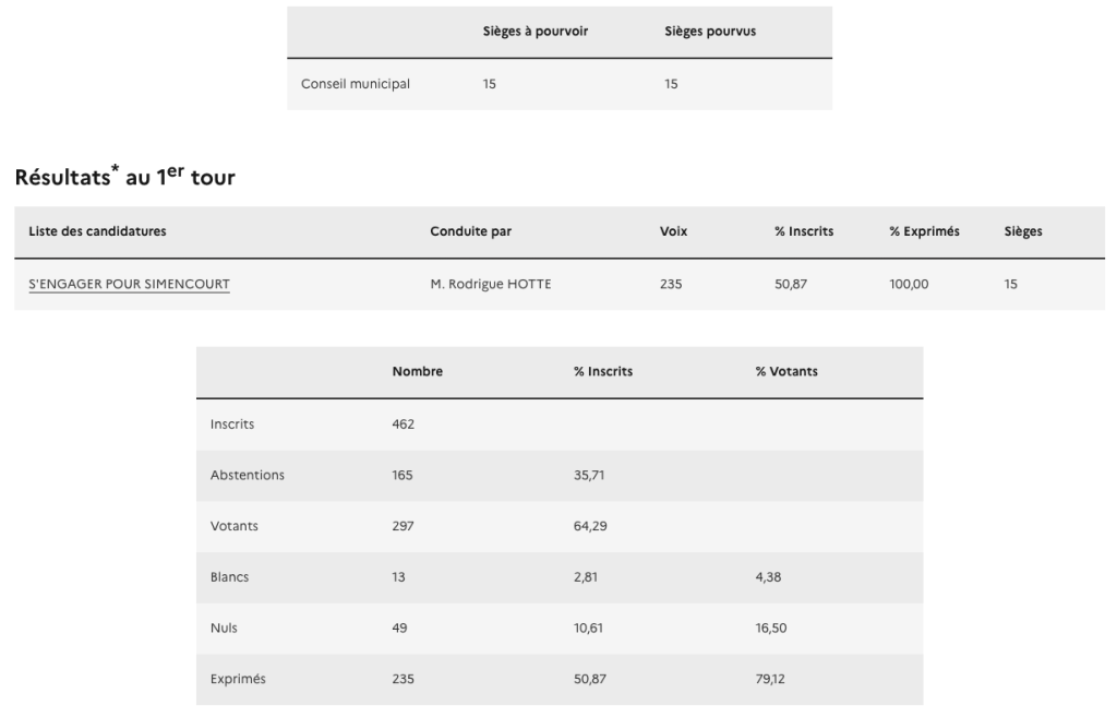 Suite aux élections municipales du 15 Mars 2026, voici les résultats :